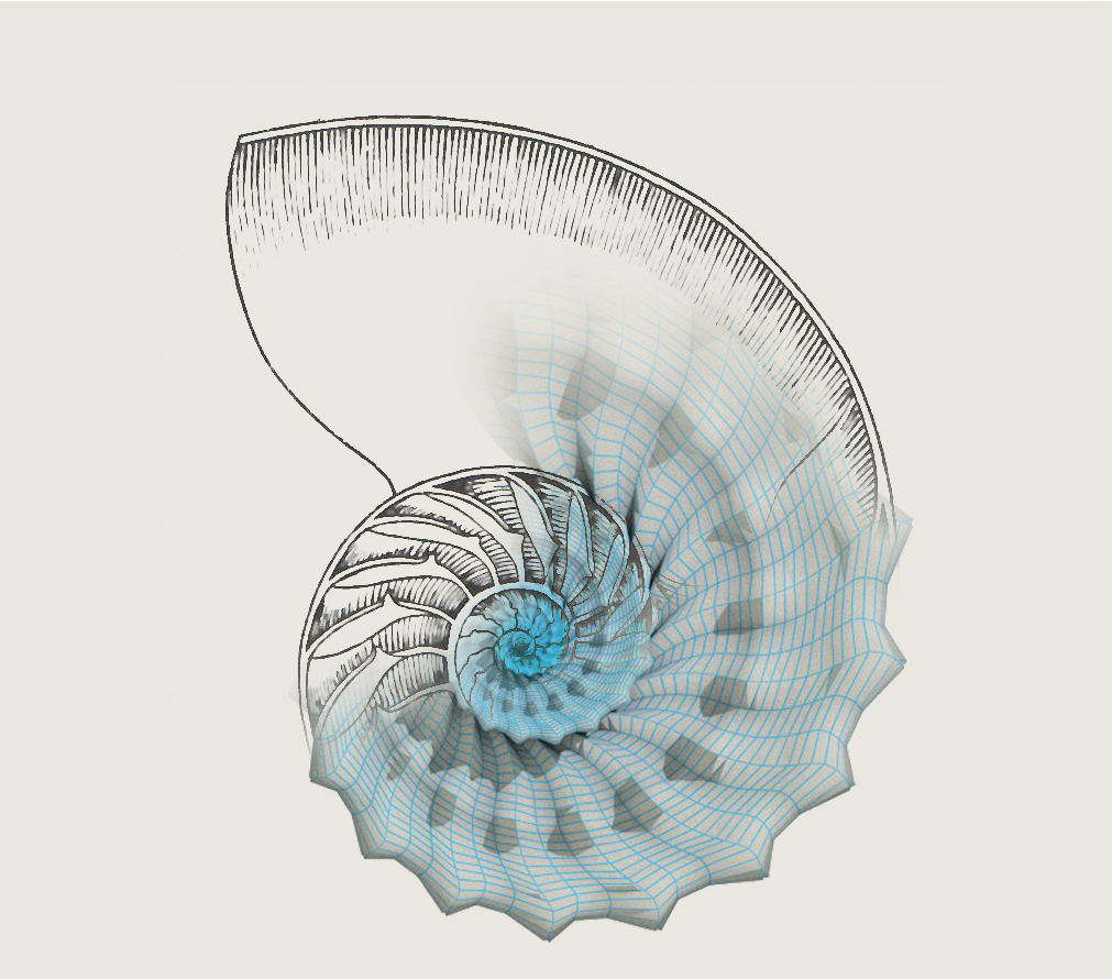 To digitally create our own shells, we sampled a number of scripts in Grasshopper, a visual programming plug-in for the Rhinoceros 3D design software, from various authors exploring spirals and shell type forms (big shout-out to the Grasshopper Forum and it’s amazing group of contributors and members). Ultimately, we cobbled together our own little Frankenstein-script, which could generate 3D structures that feature a logarithmic spiral and inner/outer profiles based on a few parameters and curves.