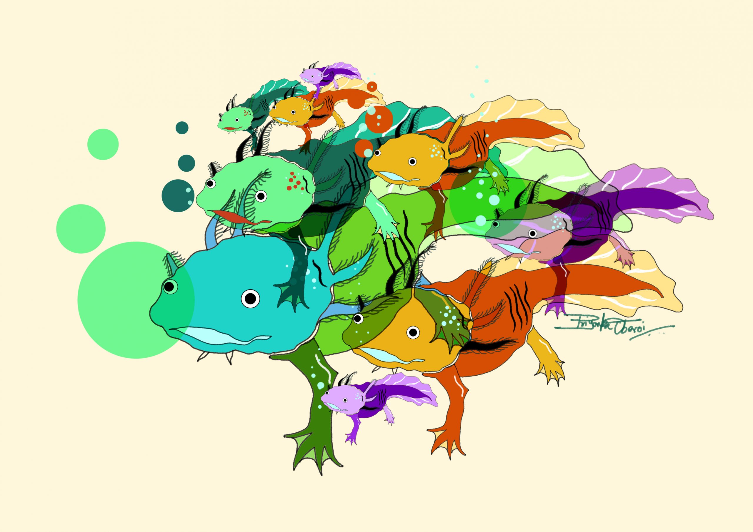 Lab Wall Art: ‘Bottoms up life forms’. Commissioned by Dr James Saenz, B CUBE – Center for Molecular Bioengineering, Dresden